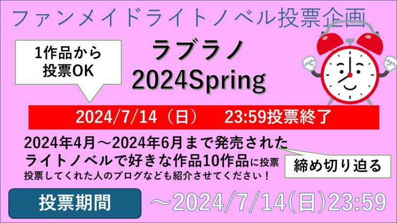 ちょっとだけ画像を直しましたが『ラブラノSpring』あと1日ちょっとだけになりました。何卒協力や投票を何卒よろしくお願いします。皆さんが盛り上げてくれることによって成り立つ企画なので本当によろしくお願いします。