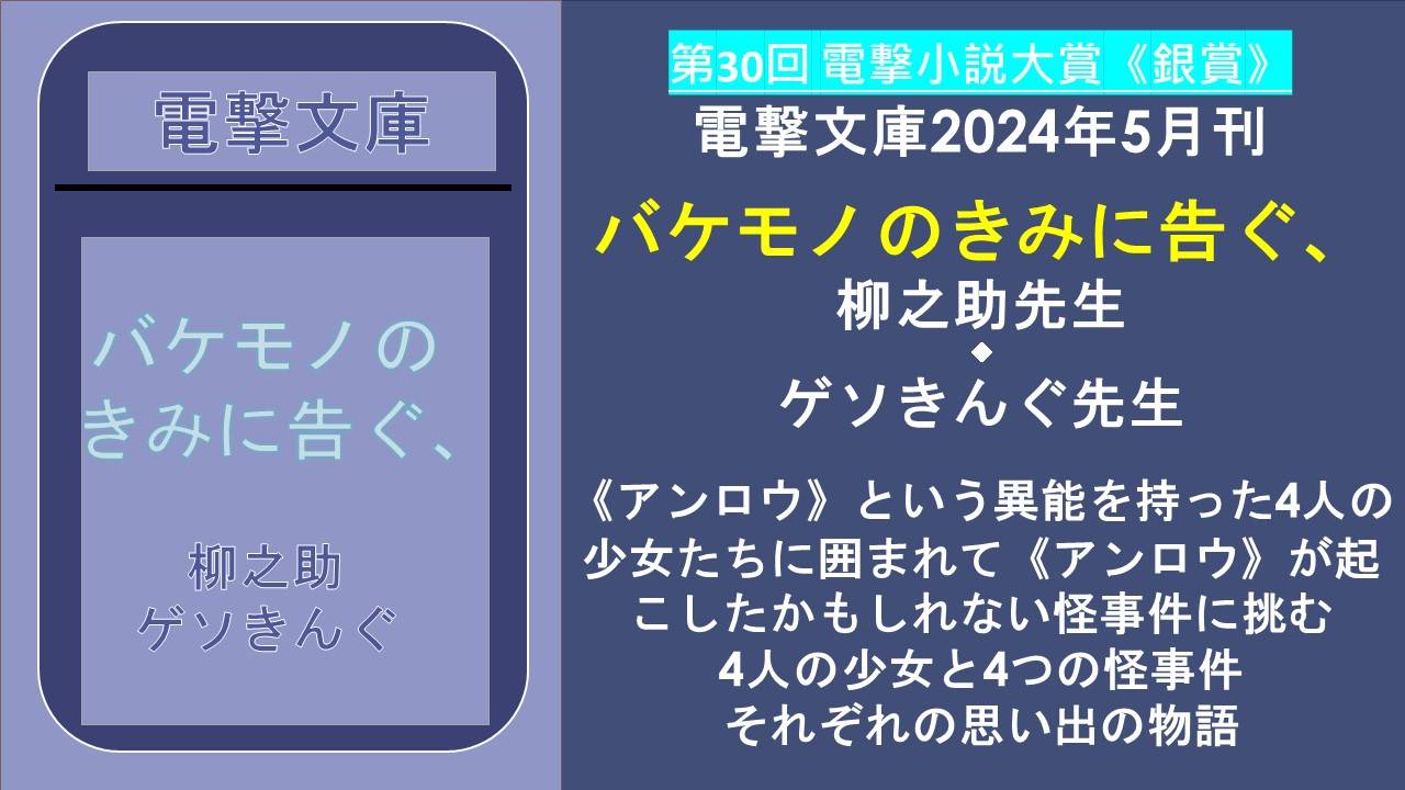 【#ライトノベル感想】柳之助先生『バケモノのきみに告ぐ、』4人の個性豊かな異能(アンロウ)の美少女たちとの深い絆と事件の物語(電撃文庫2024年5月刊)