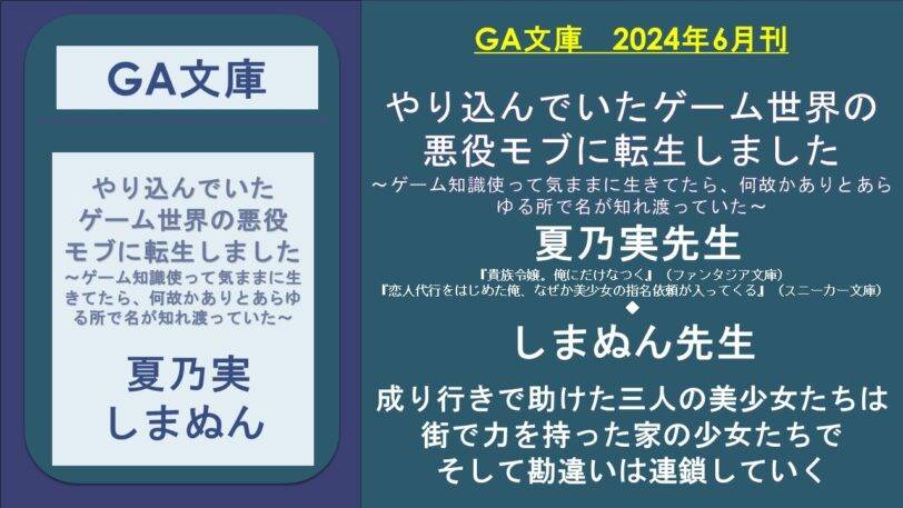【#ライトノベル感想】夏乃実先生『やり込んでいたゲーム世界の悪役モブに転生しました』悪役奴隷商人に転生したけれども、転生して反転して助けた少女から…周囲の勘違いは加速していく(GA文庫2024年6月新刊)