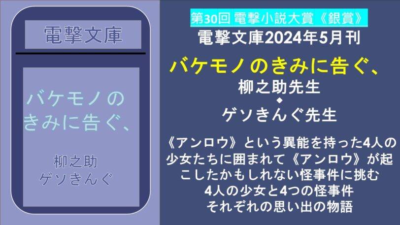 【#ライトノベル感想】柳之助先生『バケモノのきみに告ぐ、』4人の個性豊かな異能(アンロウ)の美少女たちとの深い絆と事件の物語(電撃文庫2024年5月刊)